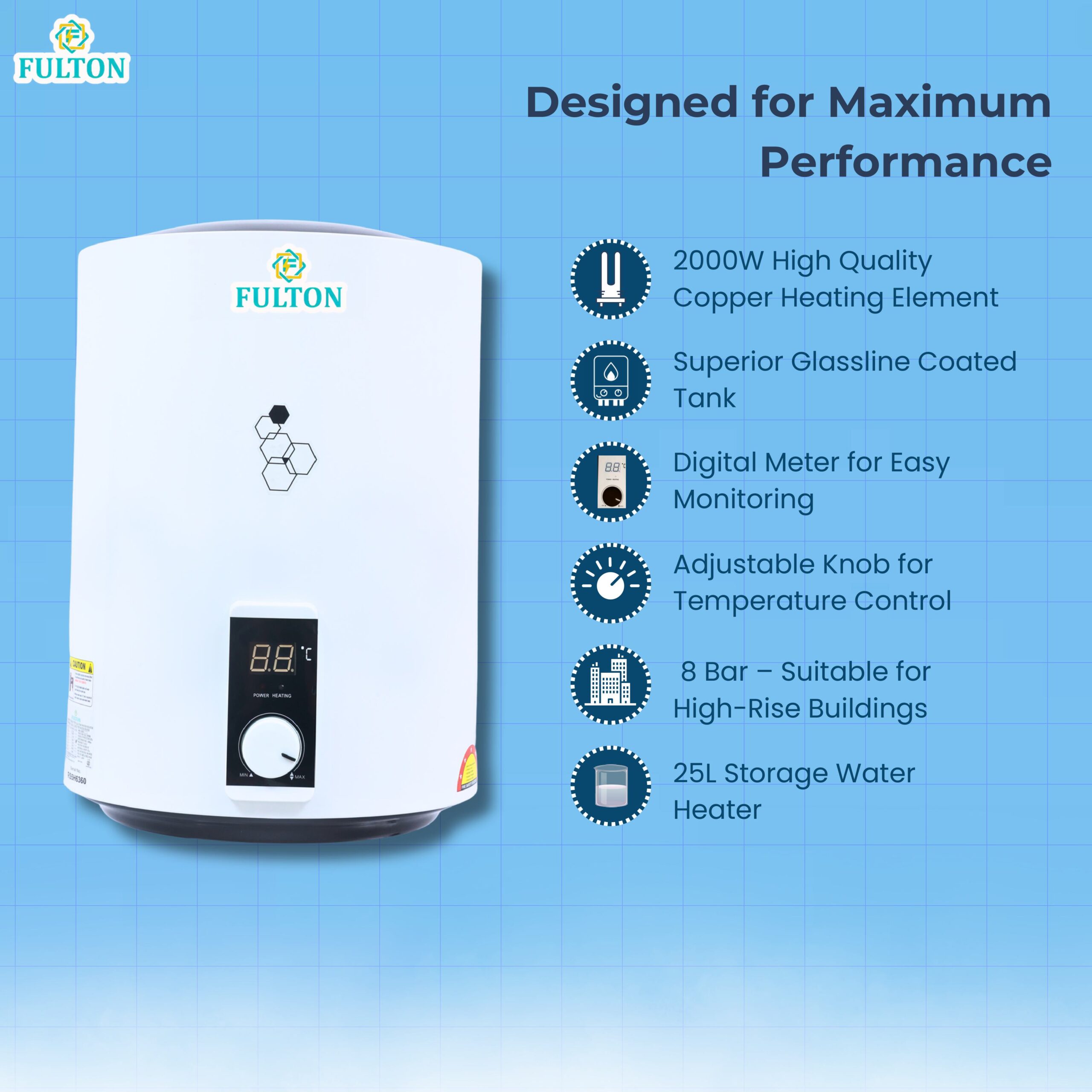 In addition to kitchen solutions, Fulton’s water heaters combine safety, energy efficiency, and fast heating technology to deliver the perfect hot water experience. Designed to suit different weather conditions, water usage needs, and interior aesthetics, these heaters are built with advanced features like thermal cut-off protection, corrosion-resistant bodies, and long-lasting performance. They are ideal for modern homes, apartments, hotels, and commercial spaces looking for reliable hot water systems.